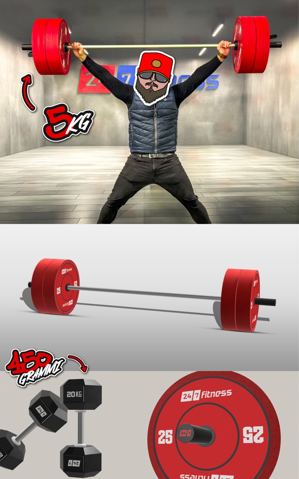 Tegime 24-7 Fitness spordiklubile ürituste tarbeks võltskangi või fake barbell-i.
